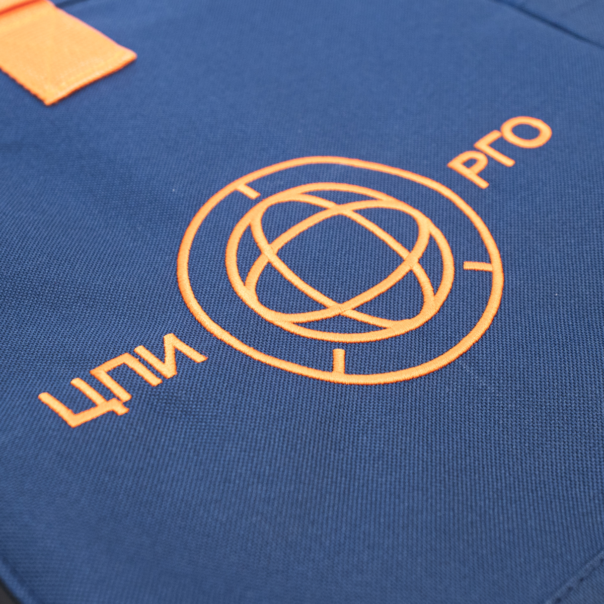 Вышивка логотипа ЦПИ РГО оранжевого цвета.