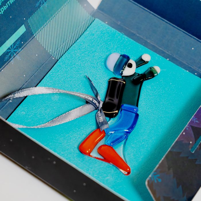Стеклянная новогодняя игрушка «Дайвер». Длина фигурки 11 см. Подвес для украшения ёлки. В комплекте – подарочная коробочка с новым логотипом Центра подводных исследований РГО.